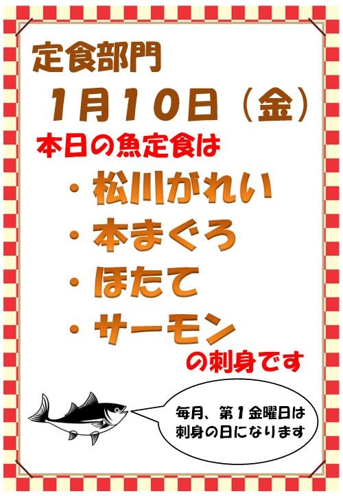 今年、毎月第1金曜日はお刺身定食ですっ!