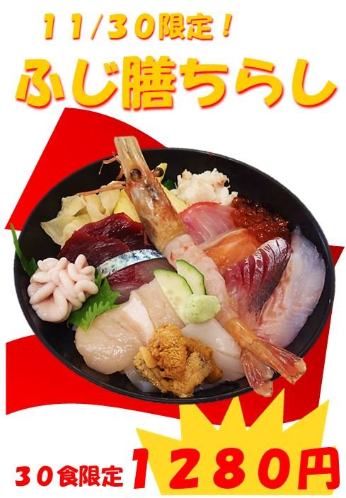 鮭児!関さば!金目鯛!などなど。特製ふじ膳ちらし!1280円!!