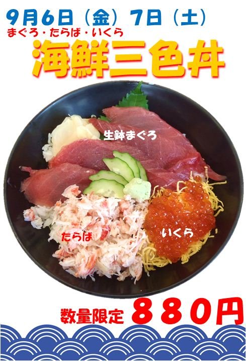 9月6日(金)、7日(土)限定。。海鮮三色丼880円!!