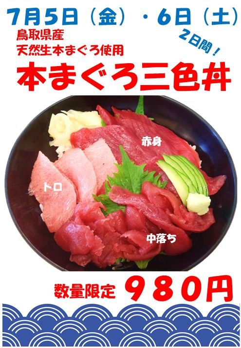 トロ!赤身!中落ち!本マグロ3色丼は明日まで!