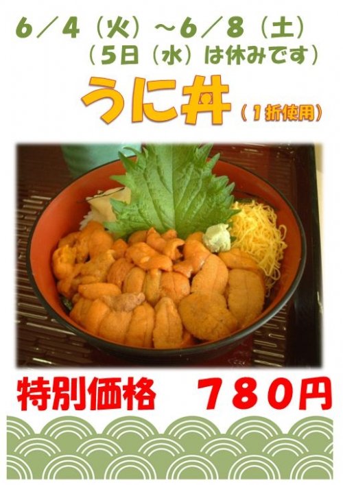 明日まで、ウニ丼780円!運動会の買い物もどうぞ!