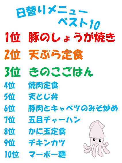 こんにちは。市場食堂ふじ膳です。さて、きょうは最近1か月の人気日...
