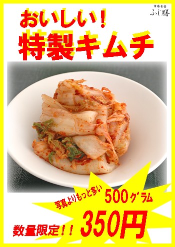 こんにちは。市場食堂ふじ膳です。昨年好評だった料理長の特製キムチ...