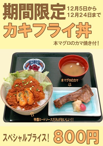 画像は期間限定メニューのカキフライ丼¥800です!なんと本マグロ...