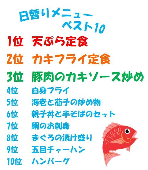 こんにちは。市場食堂ふじ膳です。今日は久々に、最近の売れ筋日替わ...