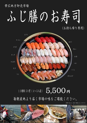 こんにちは。市場食堂ふじ膳です。ふじ膳自慢のお持ち帰り寿司のポス...