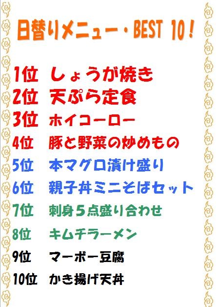 日替わり人気メニューは・・・