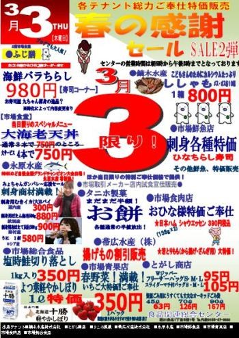 こんにちは。市場食堂ふじ膳です。さてさて、先週末の感謝セール第1...