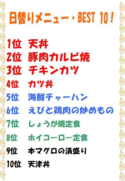 日替わりメニューランキング!!