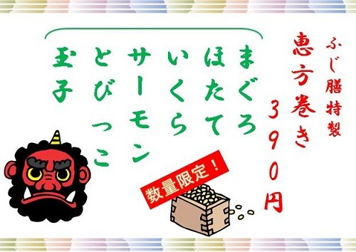 ふじ膳特製恵方巻き!(生中巻きで390円!)