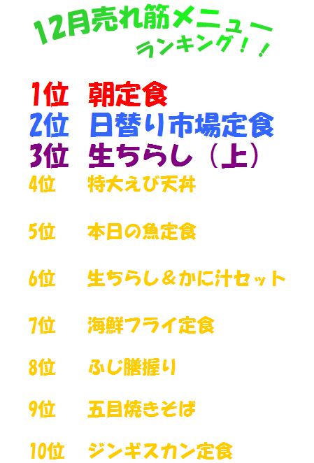 こんにちはーっ!市場食堂ふじ膳です。今日は、12月メニューランキ...