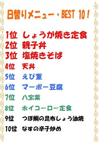日替わりメニューの売れ筋は!!