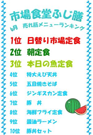 こんにちはー。市場食堂ふじ膳です。さて、今日は『6月の売れ筋ラン...