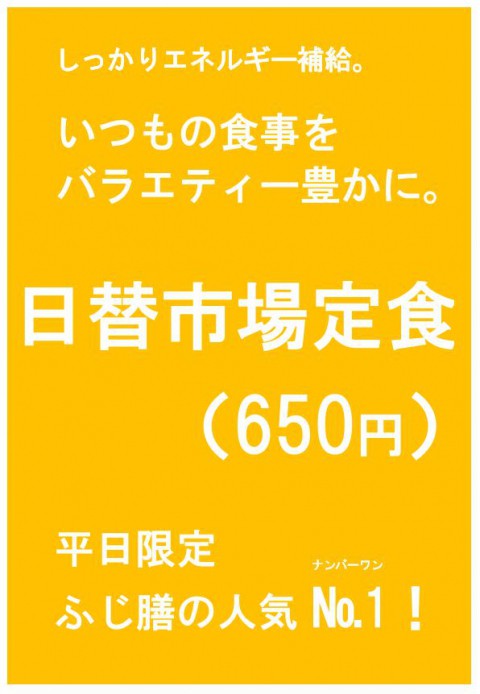 こんにちは。市場食堂ふじ膳です。明日は水曜日。ふじ膳はお休みです...