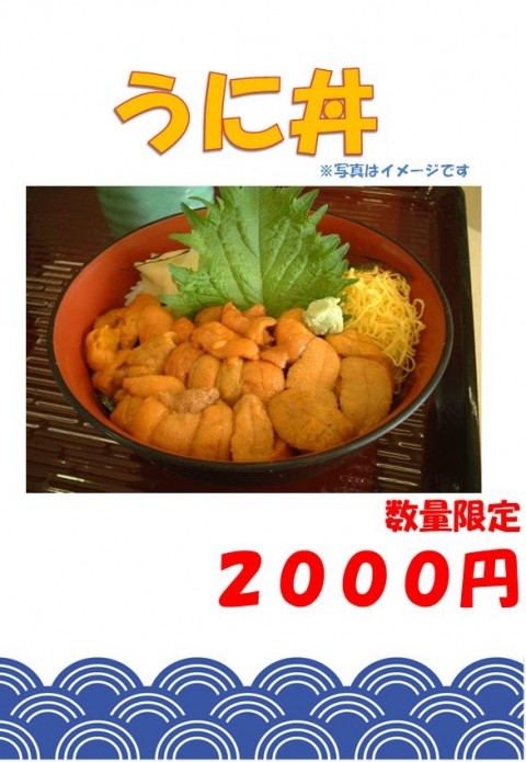 明日はお休みです。明後日は「かきとじ丼」「毛がに汁」「うに丼」!