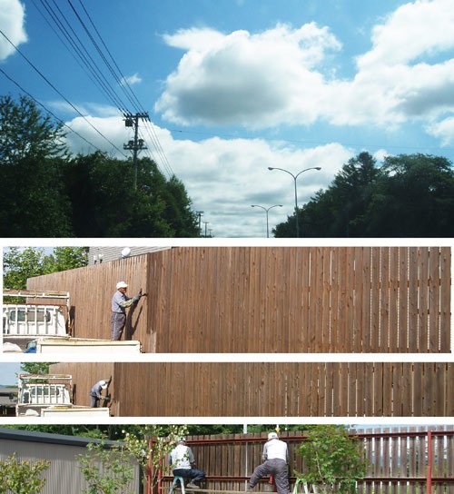 木塀の色塗りと