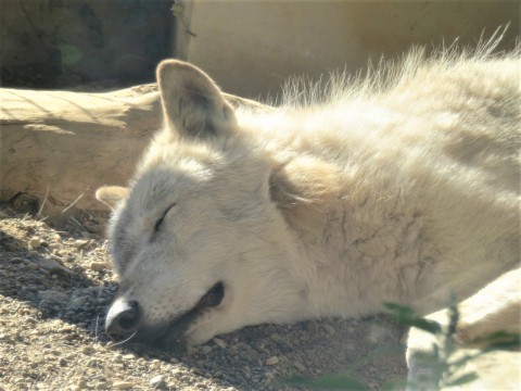 西日がまぶしい寒帯館。アイもサングラスがほしいくらい?バックヤー...