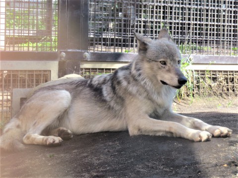 夏の被毛でスリムになっているショウ。冬毛でもふもふの期間が長いだ...