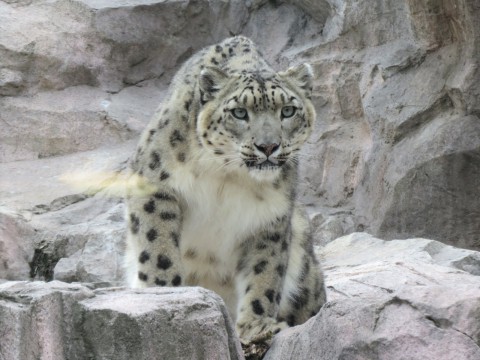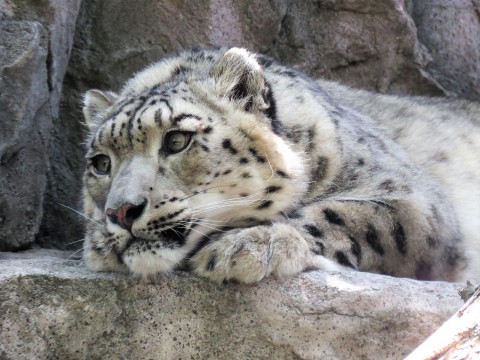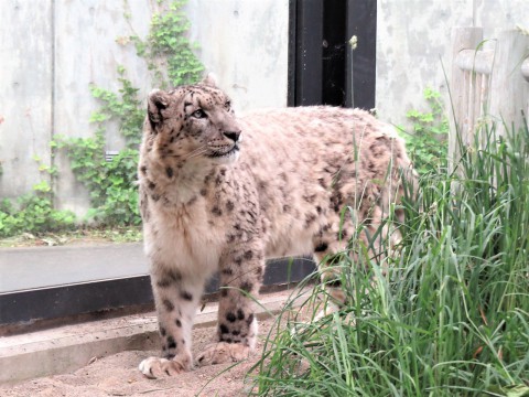擬岩の中腹でじっと過ごすシジム。屋内展示室への扉が開放されていま...