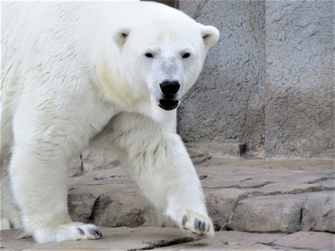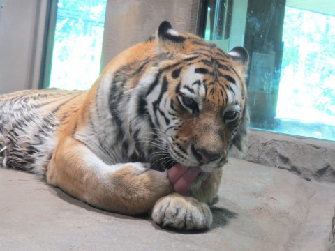 飼育員さん待ちでそわそわのショウ。「口が大きいね」とお客さんの会...