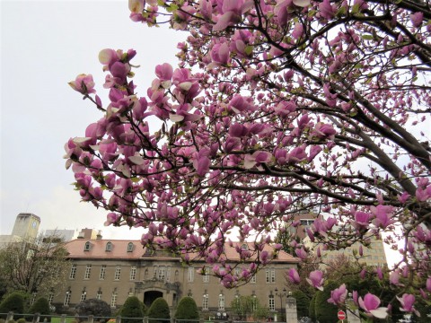 札幌市資料館前のモクレンが満開です。あと数日で見ごろも終わりとい...