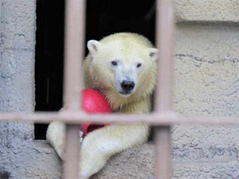 赤いボールを大事そうに抱えていたリラ。とてもお似合いです。放飼場...