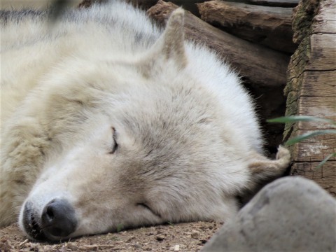雨の中、丸太にスリスリの昨日のアクバル。今日は晴れて気温も昨日よ...