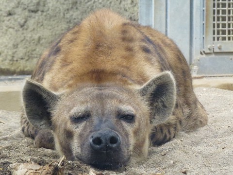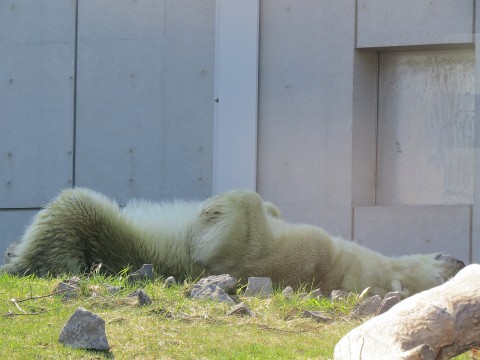 館内に入ってくる人たちを薄目で観察しながら休憩のカミ。見た目が?...