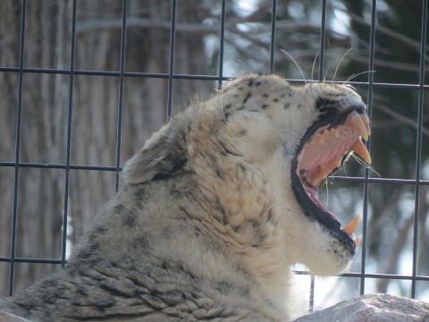 岩山の上で寝ていたアクバル。大きなあくびをして午後の活動開始です...