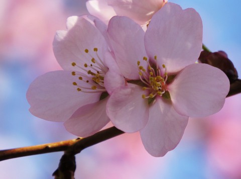 このところの陽気で早咲きの桜が咲き始めました。青空に薄いピンクの...