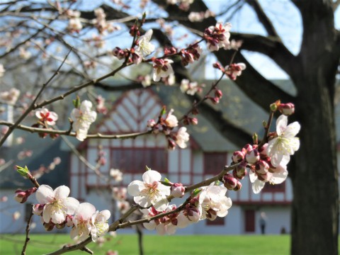 桜や梅、コブシ、モクレンなどの花々が咲き誇っています。高速道路や...