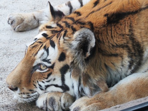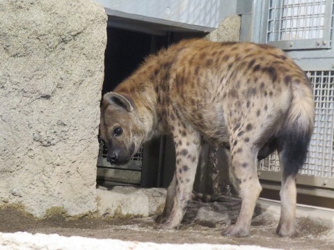 冬の数か月間、狭い屋内展示場で過ごしているカミ。そのぽんぽこりん...