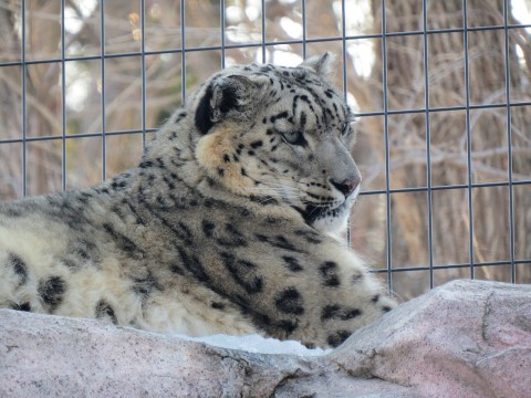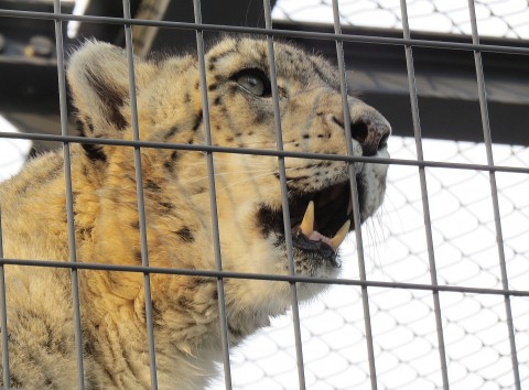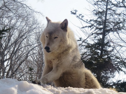 雪解けが進んでいるので、オオカミ放飼場の雪山もどんどん低くなって...