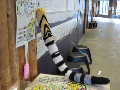 寒帯館に展示されているアムールトラの尾の作り物。アイの尾の模様の...