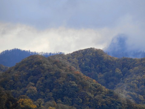 夜半からの雨が上がろうとしている朝です。木々の葉も落ち始めました...
