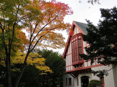 春は桜や梅、秋は紅葉が楽しめる知事公館の庭園。土曜日から雨模様で...
