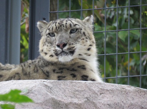 ユキヒョウ舎の背景の木々にも秋の気配。ひんやり空気は快適でしょう...