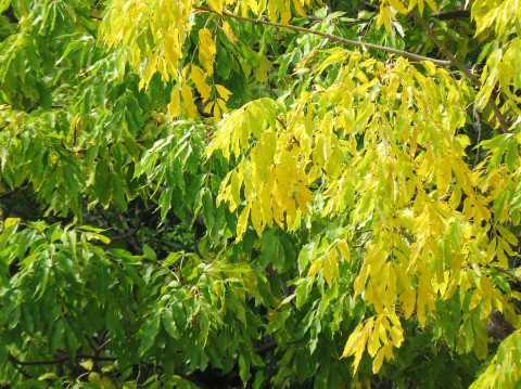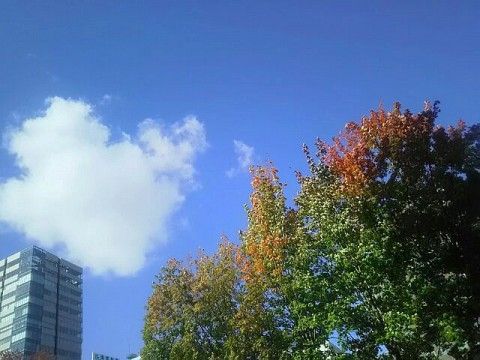 14時の気温は18.2℃。秋晴れですが、朝から強風です。紅葉は中...