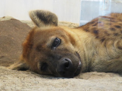 寝ているようで薄目を開けているアイ。耳もバックヤードに向けていま...