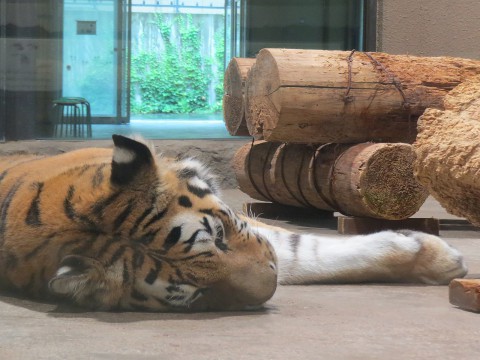 獣舎の裏側を行き来する担当さんの姿を気にしていたアクバル。サブ放...