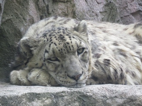 雪国のユキヒョウは25℃だとかなり暑い^^;冬毛がまだ抜け切って...