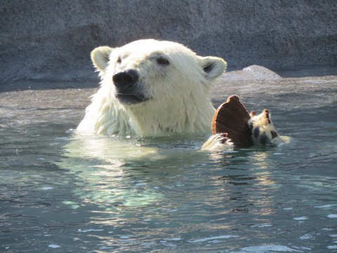 プールで遊んでいたリラ。時々ララのほうを気にしながら。その木製の...