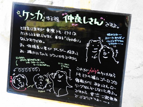 ヒマラヤグマの担当さんが描いているボード。喧嘩しているように見え...