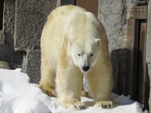 ララとリラがいる新ホッキョクグマ館の見学会でした。集まってきた人...