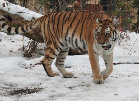 鶏肉をもらい、口の周りを舐めながら歩くアイ。ある程度食べる状態が...