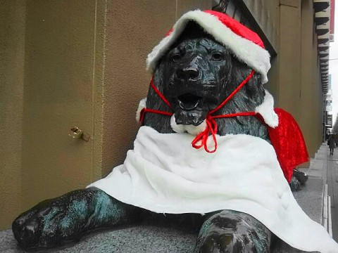 三越のライオンもサンタの衣装になっています。街中は買い物客が増え...