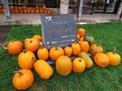 あちこちで見かける大きなカボチャ。鮮やかな色がいいですね。...