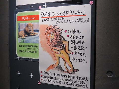 かつて飼育されていた動物の逸話が掲示されていました。過去の動物に...
