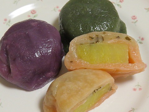 百貨店の催事場で購入。熊本名物のいきなり団子。紅イモ、よもぎ、さ...