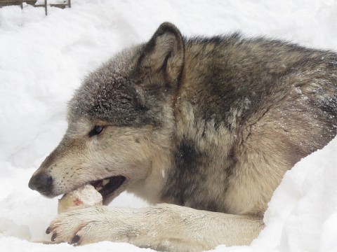 牛骨を齧っていたルーク。おなかの足しになるところはほとんどありま...